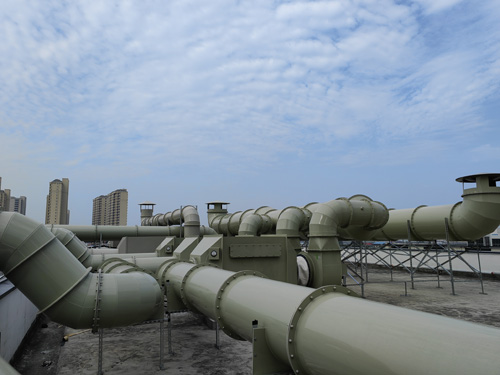 科學試驗室有機廢氣 → 化學活化炭濾水器 → 風機電機電機 → 排卸